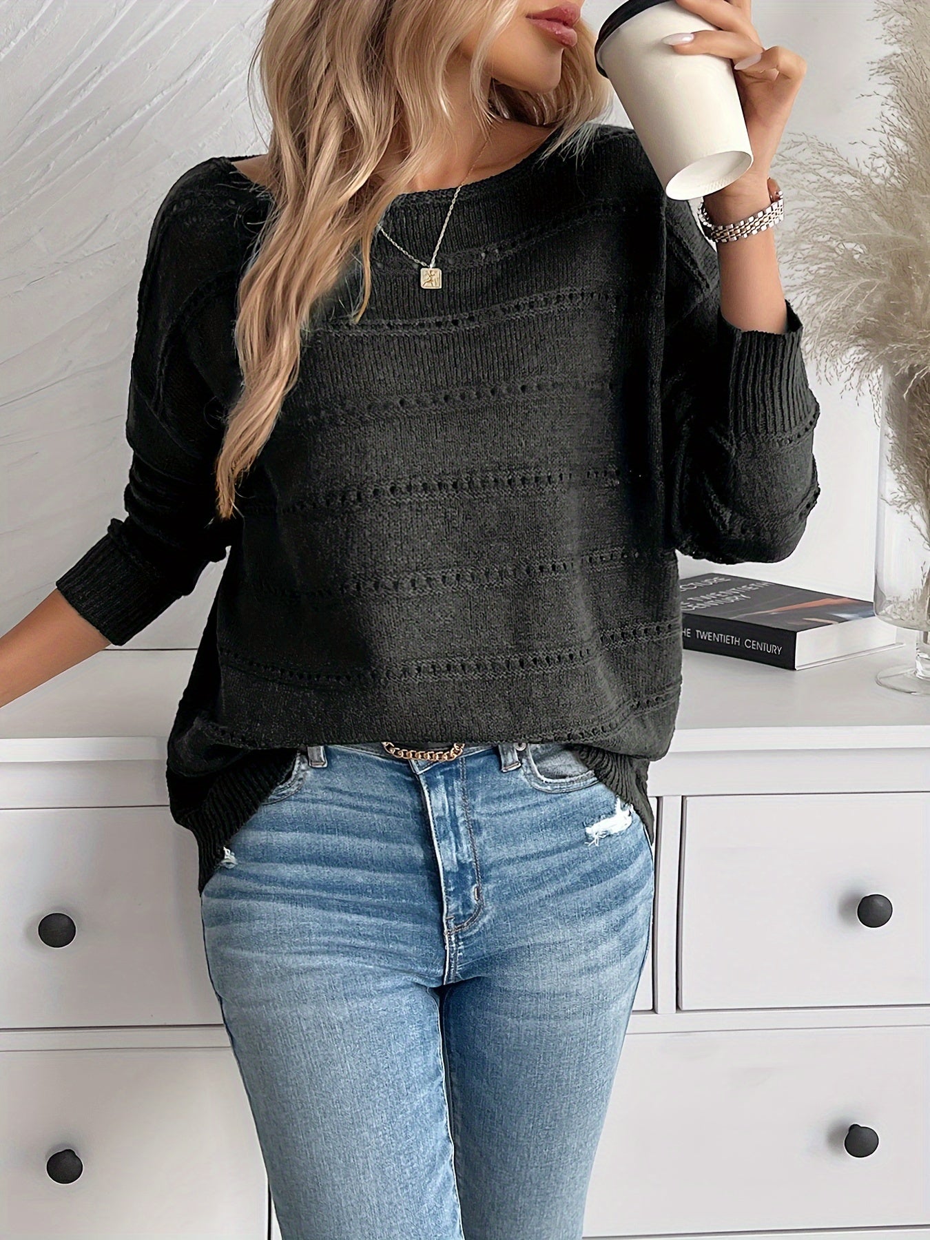 Den Elora™ striktrøje har en smuk bred halsudskæring og et elegant strikmønster, der giver et sofistikeret udtryk. Det lette og bløde materiale sikrer høj komfort hele dagen, mens den afslappede pasform gør den nem at style. Perfekt til både hverdagsbrug og mere formelle anledninger.