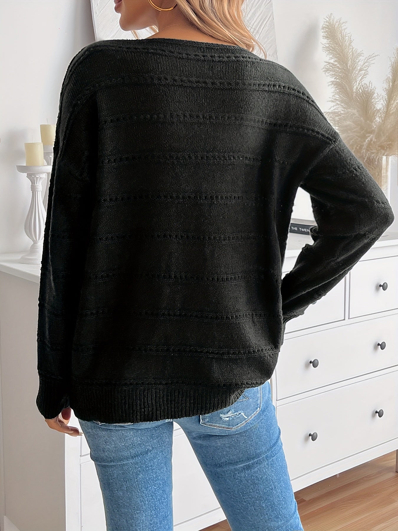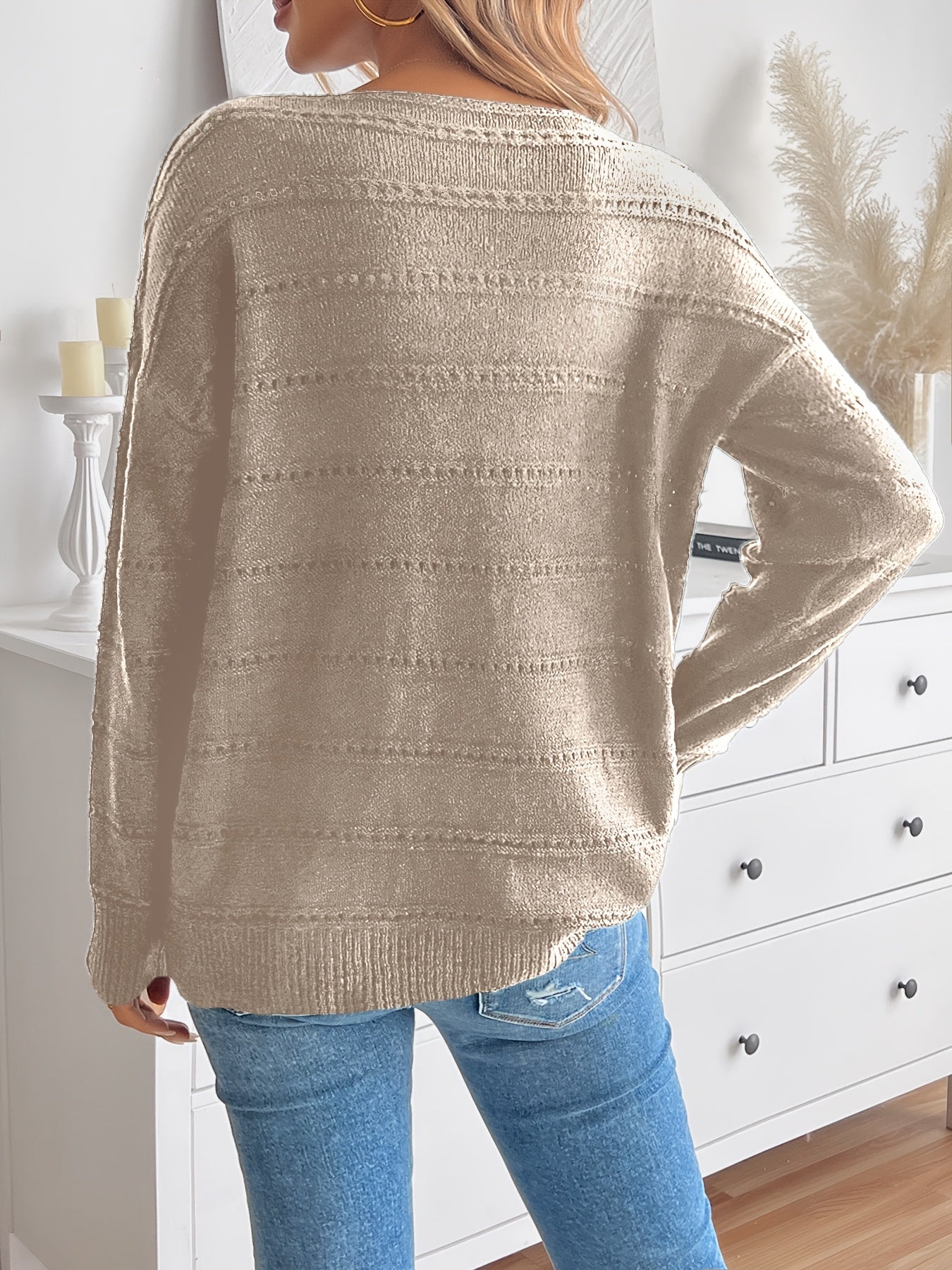 • Dekorativt strikmønster – Giver trøjen et unikt og stilfuldt præg.