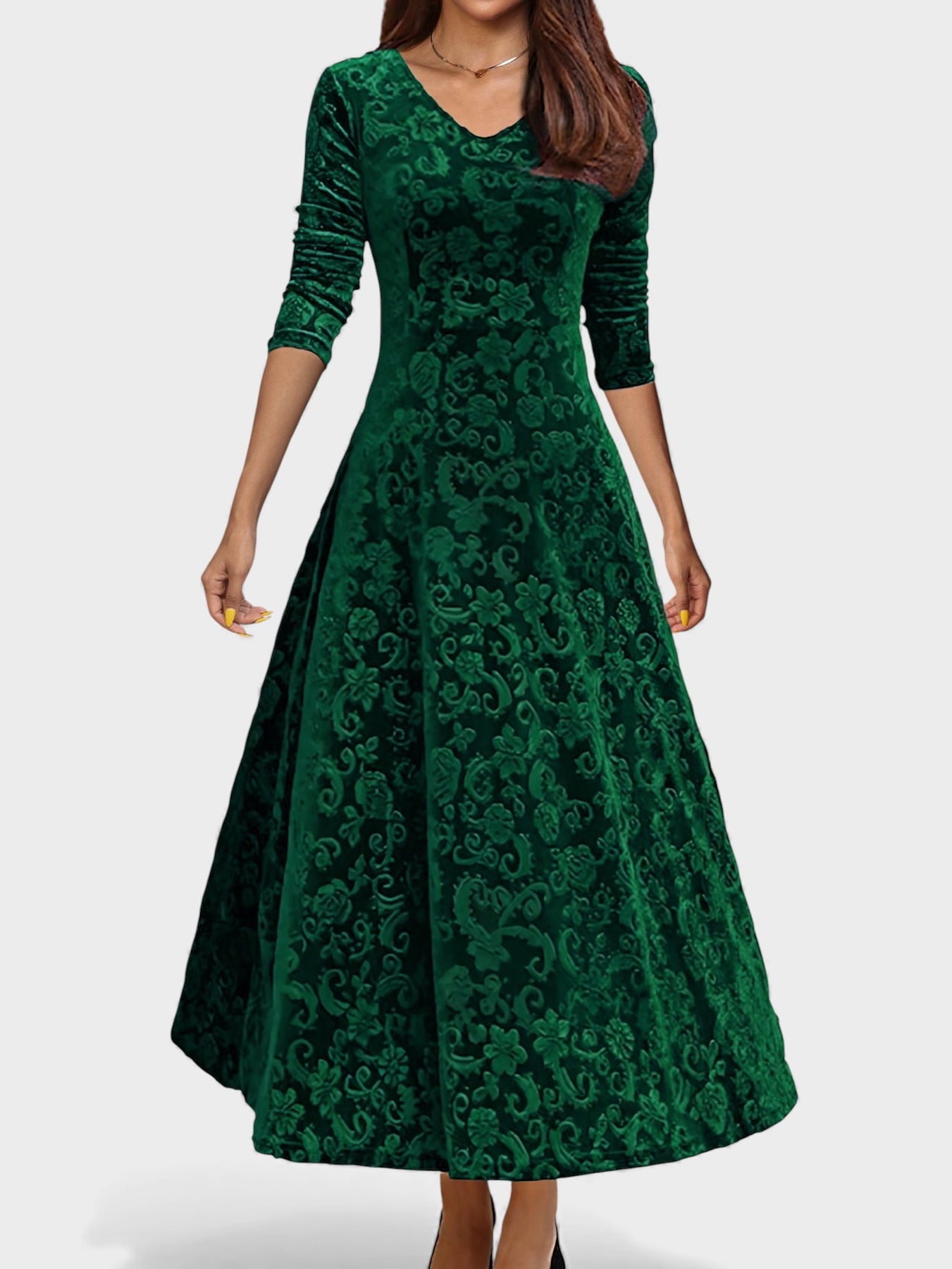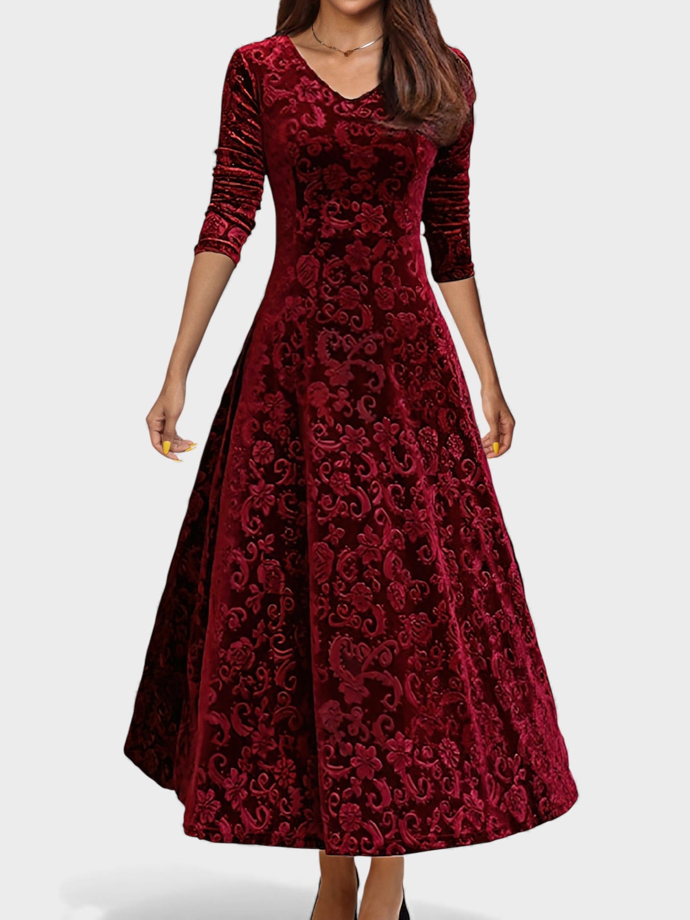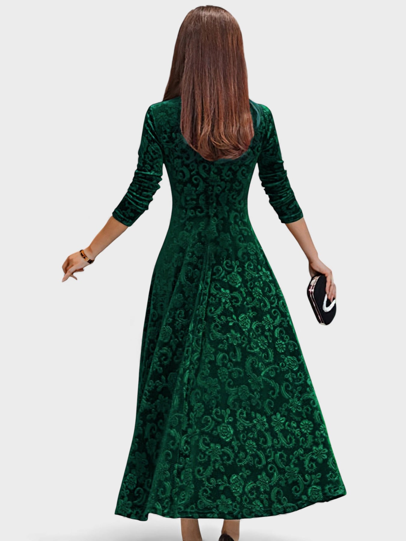 El Elvira™ es el vestido perfecto para deslumbrar en cualquier celebración. Con su silueta esculpida y su textura de terciopelo elegante, este vestido combina sofisticación y confort para momentos especiales.