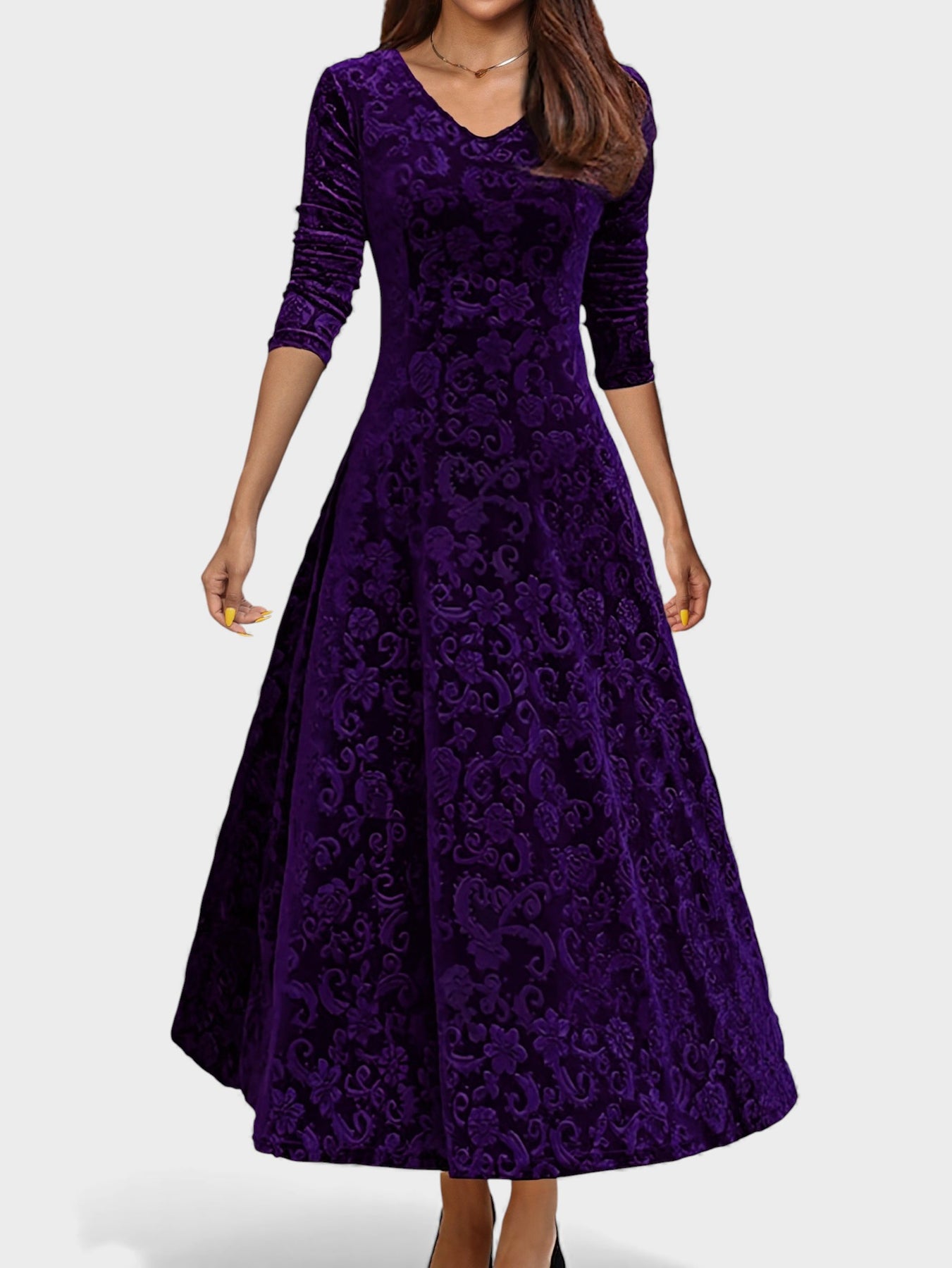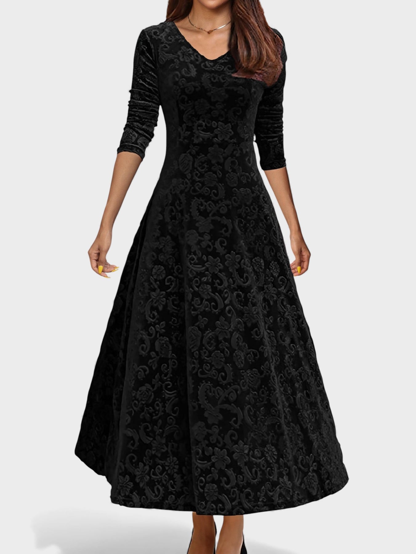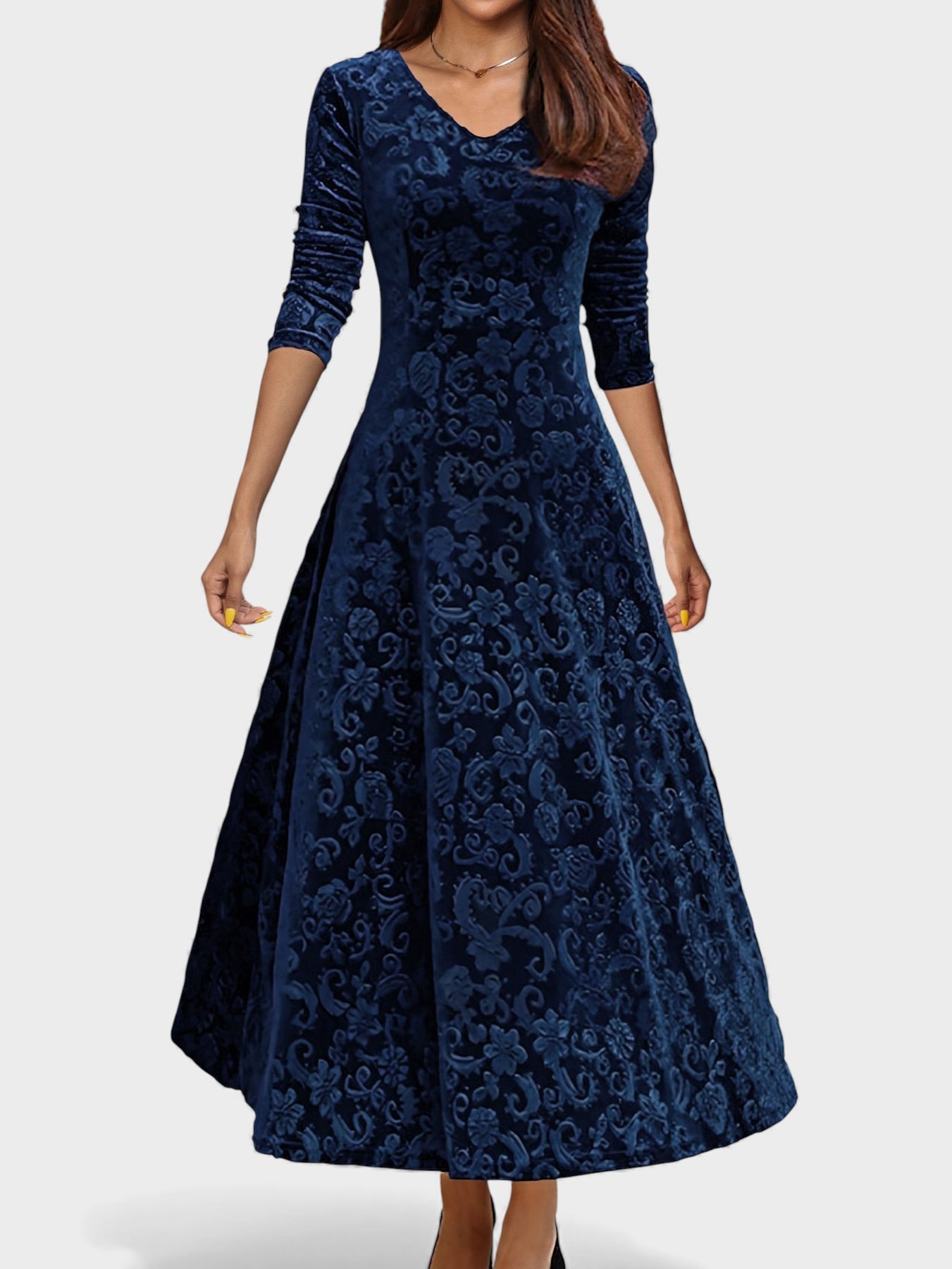 El Elvira™ es el vestido perfecto para deslumbrar en cualquier celebración. Con su silueta esculpida y su textura de terciopelo elegante, este vestido combina sofisticación y confort para momentos especiales.
