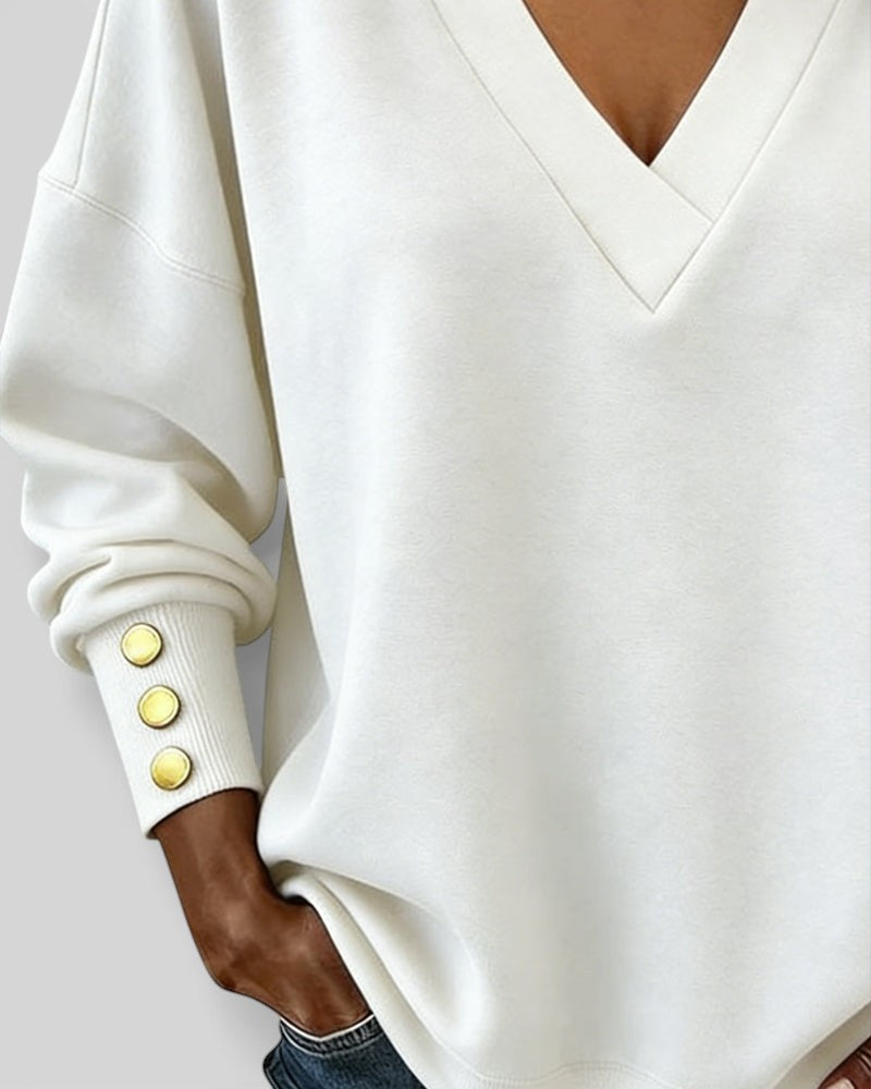 La Nerea™ es la blusa que combina sofisticación y comodidad con su escote en V delicado y sus detalles de botones. Hecha para ser tu aliada durante los días frescos de otoño e invierno, esta prenda versátil y chic es ideal tanto para tu día a día como para ocasiones especiales.
