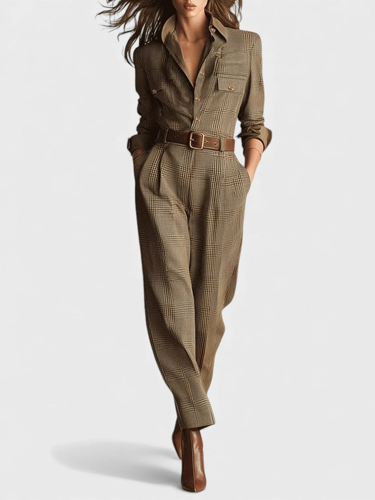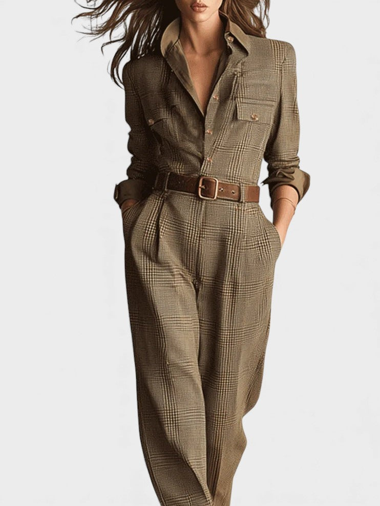 El Julia™ | Mono utilitario marrón con bolsillos combina estilo y funcionalidad en una sola prenda. Su textura tweed y su diseño utilitario crean un look pulido y moderno, perfecto para trabajar, salir o mantener un estilo impecable sin esfuerzo.