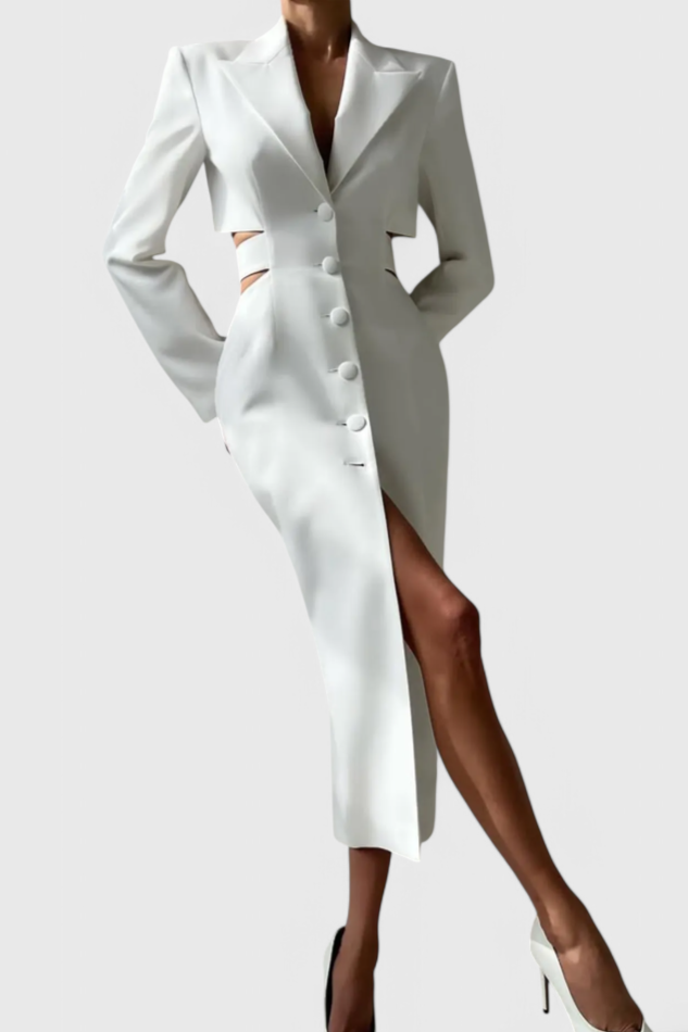 Vestido Blazer Midi Bernice con Corte y Espalda Abierta